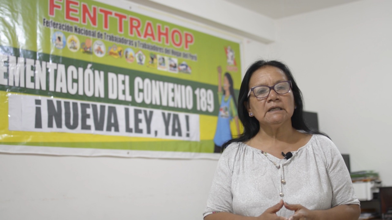 Leddy Mozombite Linares, Secretaria General de la FENTTAHOP-CGTP señala que Las trabajadoras/es del hogar tienen derechos que deben ser respetados. La Fenttrahop exige que la Nueva Ley respete sus derechos laborales acorde al Convenio 189 de la OIT, ratificado por Perú.